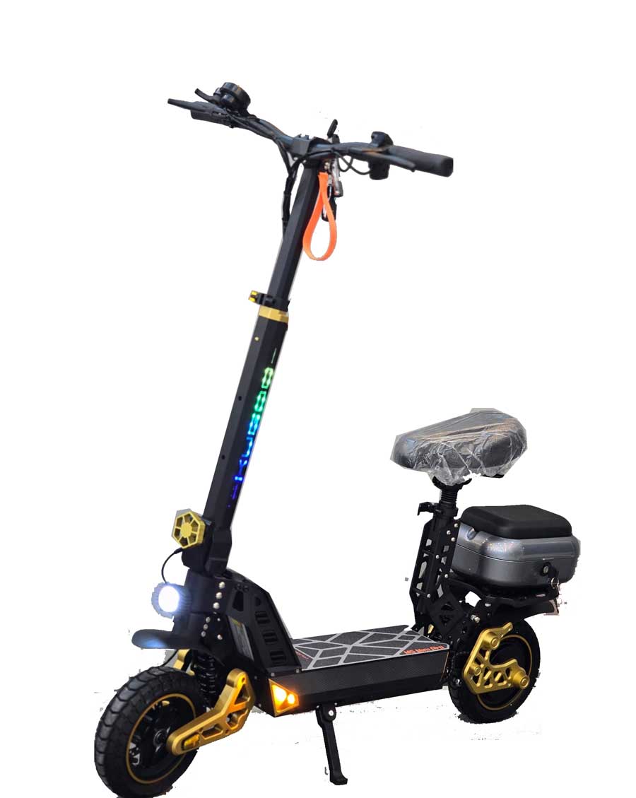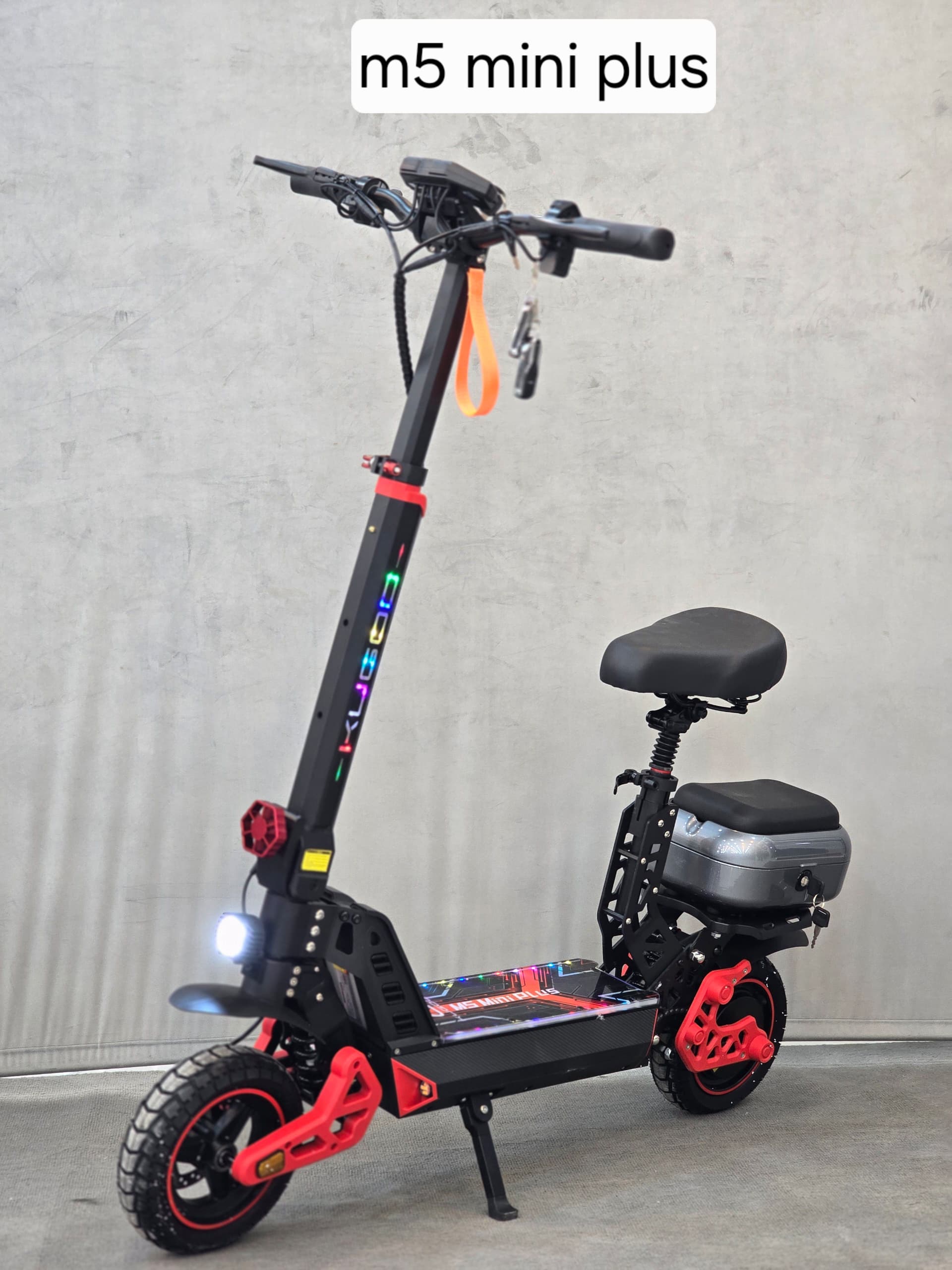 اسکوتر دو نفره کوگو KUGOO مدل M5 mini plus 48 ولت کف ال ای دی ستون ال ای دی باکس دار کمک فنر جلو و عقب صندلی طبی ارتفاع صندلی و فرمان قابل تنظیم